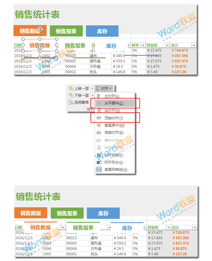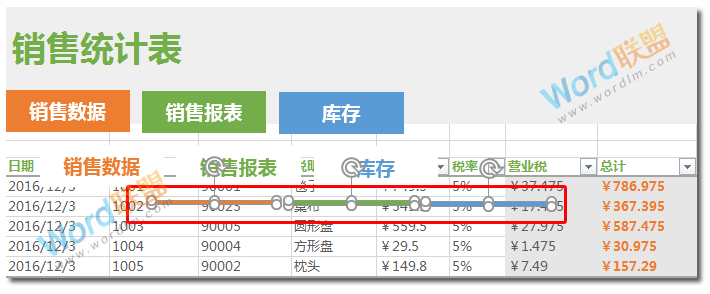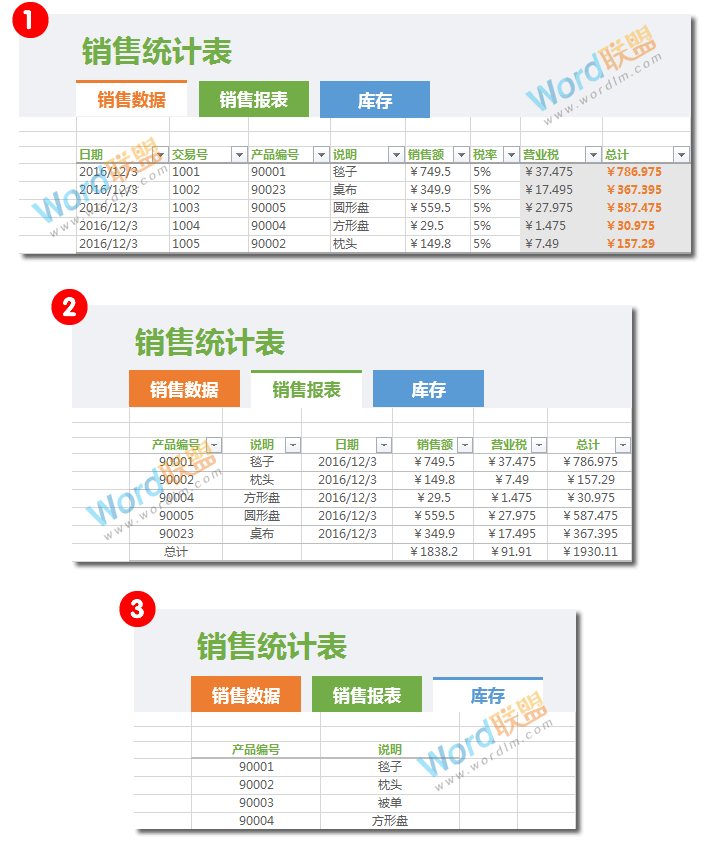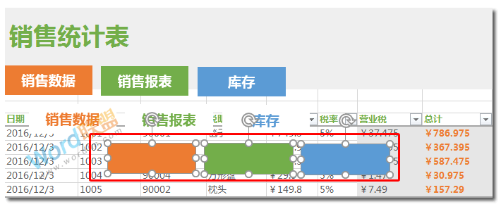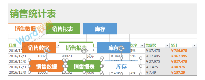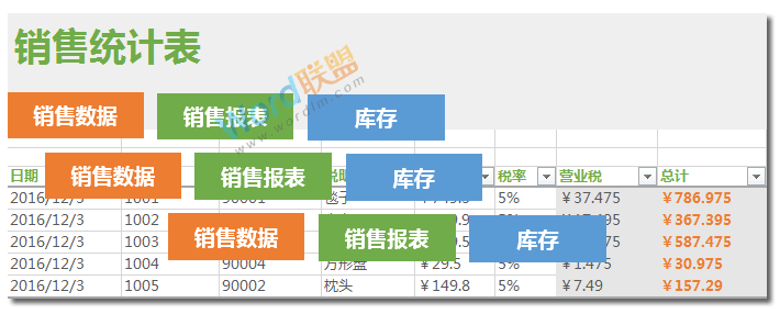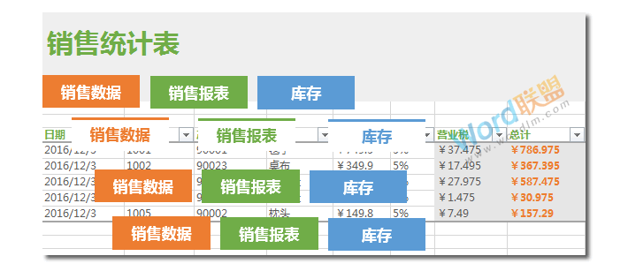 楼主(阅:15883/回:0)Excel制作漂亮的切换式销售统计表今天我教大家做一个可切换式的销售统计表,附带按钮,点击后可以切换到另外一个页面,超赞。相信大家一定会喜欢的,当然,我这里的教大家的是方法,大家可以结合自己平常所用的表格来灵活运用制作! 设置表格 步骤一、首先选中前五行单元格,然后【右键】-【设置单元格格式】,在弹出的设置单元格格式中选择【填充】,将颜色设为【灰色】。 步骤二、在B2单元格输入“销售统计表”,字体【微软雅黑】;字号【28】;颜色【绿色】;【加粗】。(当然,这个也可以根据你自己喜好来设置,不一定要跟我弄得一模一样的) 创建多个工作表 步骤一、【右键】点击工作表,选择【移动或复制】,然后将Sheet1再复制两份一样的工作表。 步骤二、然后【右键】工作表,点击【重命名】,将他们依次更名为:销售数据、销售报表、库存。 填充表格数据 步骤一、接下来我们需要数据填充表格了,分别在这三个工作表中的B8单元格开始填充表格的数据,填充的内容根据个人实际情况来定,我这里只是教大家做,数据内容我随便在网上找的一些。填充完后,尽量美化一下表格,使其与我们主体更加融合搭配。 制作切换按钮 步骤一、点击【插入】选项卡,在【插图】选项组中点击【形状】,插入一个【矩形】。然后,选中这个矩形,点击【绘图工具】中的【格式】-【大小】高度设为:1.24;宽度:3.65,再复制两份出来,分别给上不同的颜色。 步骤二、【右键】选中矩形,选中【编辑文字】,然后分别在三个矩形中输入:销售数据、销售报表、库存。字体【微软雅黑】;字号【16】;颜色【白色】;【加粗】;对齐方式【垂直居中】,文本【居中】。 步骤三、按住键盘上的Shift用鼠标左键点击这三个矩形,可以同时选中这三个矩形,然后,复制粘贴两份出来。 步骤四、然后将复制出来的第一组三个矩形,分别将填充色改为【白色】,字体颜色分别改成原来矩形的颜色。 步骤五、再将复制出来的第二组三个矩形里面的文字删除掉。 步骤六、点击【绘图工具】-【格式】-【大小】中,将他们的高度设为【0.1厘米】。 步骤七、分别选中白色矩形和对应颜色的矩形条,然后一个个将他们【绘图工具】-【格式】-【排列】-【对齐】中分别选中【水平居中】和【顶端对齐】。最后组合一下。 步骤八、再将顶部三个矩形重新复制两份出来。 步骤九、利用【排序】-【对齐】中的命令,将他们依次排序成下图样式。 步骤十、将第二组三个矩形剪切到“销售报表”工作表中相同的位置;将第三组三个矩形剪切到“库存”工作表中相同的位置。如下图所示: 步骤十一、接下来我们给这些按钮添加超链接。在“销售数据”工作表中,右键选择“销售报表”按钮,然后在弹出的右键菜单中选择“超链接”。 步骤十二、在弹出的“插入超链接”窗口中的【链接到:】处选择【本文档中的位置】,然后右边选择对应的【销售报表】确定。 步骤十三、接下来的步骤就相同了。我简单说一下:给第一个工作表中给“销售报表”和“库存”加上相应的超链接。第二个工作表中给“销售数据”和“库存”加上对应的超链接。第三个工作表中个“销售数据”和“销售报表”加对应的超链接。 表格美化 为了使表格看起来更加美观,我们可以将三个工作表中的【网格线】取消勾选。再将表格之外的空白处的底纹设为【灰色】。A列的列宽改为3。就OK了! 临事有三难:能见,一也;见而能行,二也;当行必果决,三也。 |